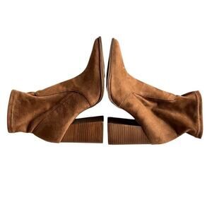 This wear-with-everything bootie is highlighted by a pointy toe and an inverted stacked heel.