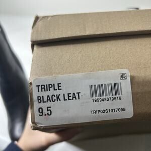 The product is a pair of Steve Madden Triple Black Boots in women's size 9.5. These leather platform heels feature a square toe shape, zip closure, and chunky style. They are designed specifically for the fall, winter, and spring seasons. The triple black color and platform style make them versatile and trendy for various occasions. Made by the popular brand Steve Madden, these boots are a fashionable and stylish addition to any woman's wardrobe.