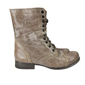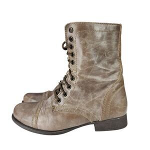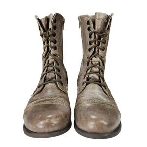 Steve Madden Troopa Boots 7M Womens Combat Taupe Factory Distress Look Moto Punk