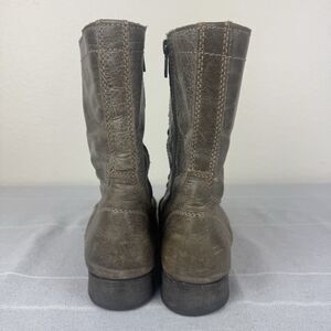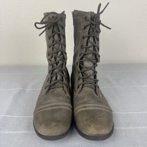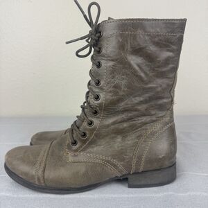 Steve Madden Troopa Combat Moto Lace Up Leather Boots Mid Calf Stone Taupe 9