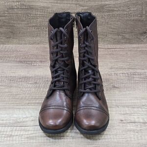 Steve Madden Troopa Women's Size 7.5 Brown Leather Lace Up Zip Boots (2256) NEW