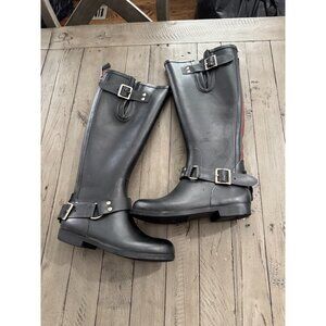Steve Madden Tsunami Wellies Tall Black Buckle Rain Boots Red Detail Size 5
