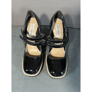 Steve Madden Twice Size 7 Mary Janes Pumps Black Patent Block Heels Platforms