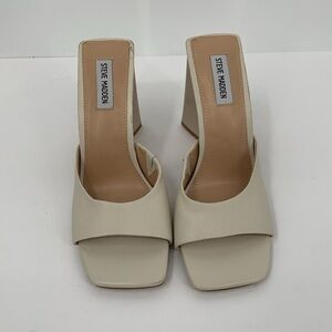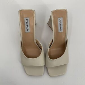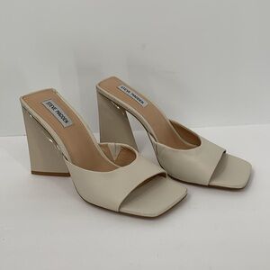 Steve Madden Twist slide heel sandal shoe sculptural heel triangle cream mule 10