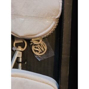 This is a Steve Madden Removable Pouches for a Belt Bag in Ivory for women. The exterior is made of faux leather and vinyl, with a beige lining.