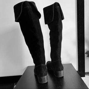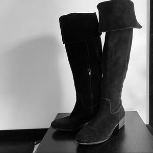 Boots, over the knee boots, black suede boots, on trend, trendy, boots for dress, fold over, boots over jeans, high boots
