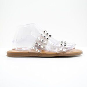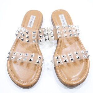 Steve Madden Unini Clear & Silver Studded Flat Slide Sandals - 8.5