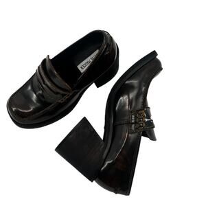 Steve Madden Universe Brown Leather Platform Loafer Heels Size 7.5M