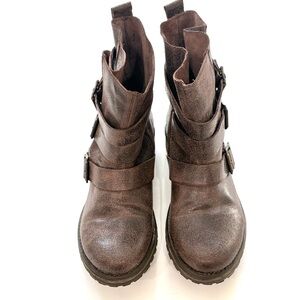 Steve Madden VTG Colony Brown Leather Ankle Moto Boots Size 8M Distressed Biker