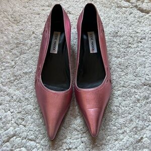 Steve Madden VTG Kondor Metallic Pink Leather Floral Cut Out Pointed Toe Kitten Heels Sz 8