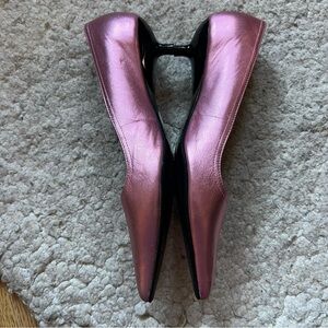 Shoes are in GVUC and have an entire life left to live. Some signs of wear and tear from use and storage.Please be sure to see the back of the heels, some of the metallic pink has worn to be a little less shimmery- same with the toes. Zoom in photos to see intricate details and signs of wear and tear. Shoes show signs of normal wear and tear from use.