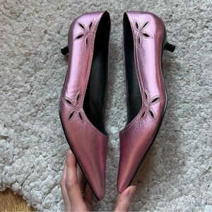 Steve Madden VTG Kondor Metallic Pink Leather Floral Cut Out Pointed Toe Heels