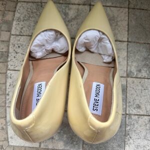 Step into elegance with these cream stiletto heels from Steve Madden, featuring a sleek pointed toe and a glossy patent leather finish. The high stiletto heel adds a touch of sophistication, making them perfect for formal occasions. These heels are a timeless addition to any wardrobe, offering both style and versatility.