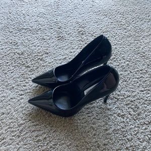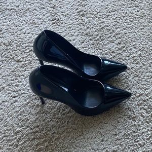 Hello everyone! I'm listing these beautiful, Steve Madden Vala Pumps. This pair in specific was worn ONCE, for an hour long photoshoot. I bought this pair not too long ago in Spring 2022. There are one or two scuffs on the vamp and topline (see the last two pictures), and zero to minimal wear on the outsole. There's a slight manufacturer's defect inside the sole of the right heel (see 8th picture). It's seems to be some sort of cardboard residue-- mentioning for clarity. These are US Women's size 7.5 in color "Black Patent". However, the pumps are definitely not true to fit and come on the smaller side. I would say they run 0.5 to 1 size small, so these would fit someone with US Women's size 7 the best, maybe even 6.5 as well for a more roomier fit. Pumps come in original box. Pumps originally bought for around $110 USD in store.