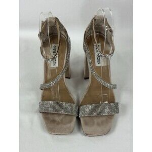 Steve Madden Varali Nude Sandals 7.5 Rhinestone Block Heel Suede