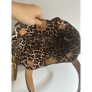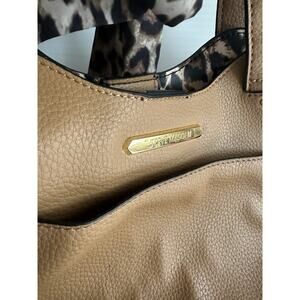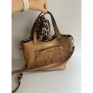 Steve Madden Vegan Leather Small Tote in Cognac W/ Cheetah Bow Scarf Accent