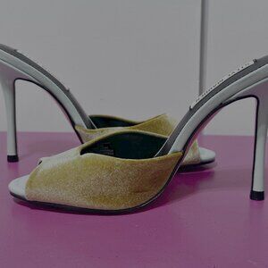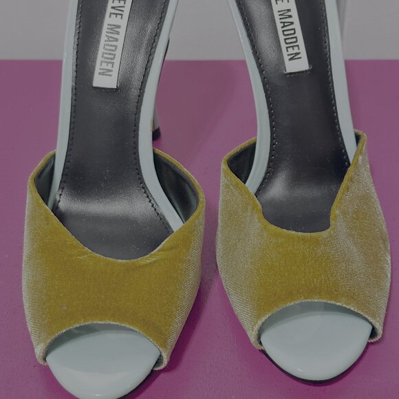 The Steve Madden Summer Velvet Slide Heels in size 6.5 are a stylish and trendy option for women looking to add a pop of color to their summer wardrobe. The turquoise and camel velvet combination creates a unique and eye-catching look, perfect for a night out or special occasion. The slip-on style and comfortable velvet material make these heels a practical and fashionable choice for the season.
