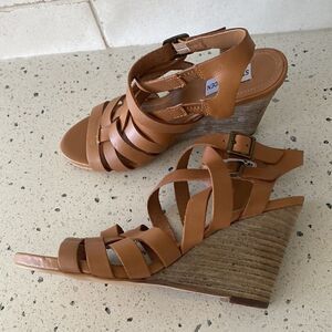 Steve Madden Venis Natural Leather Strappy Wedge Sandals Women’s Size 7.5