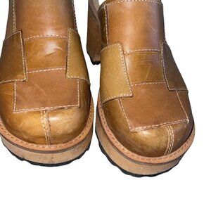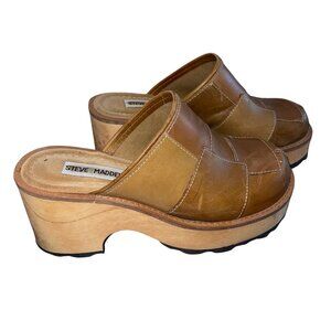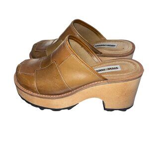 Steve Madden Vintage Women's Clog Size 7 Tan Patchwork Wooden Casual