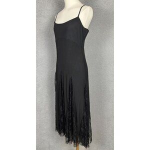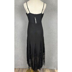 Steve Madden dress, black lace dress, midi dress, gothic style, lace inserts, women's dress, adjustable straps, black dress, polyester dress, nylon dress, Steve Madden clothing, size small dress, evening dress, lace dress