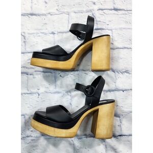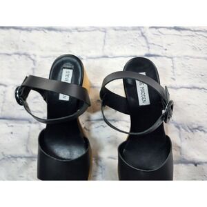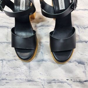 Steve Madden WOMENS SIZE 10 Ruth Black Strap Shoes Wood Block Heels Sandals