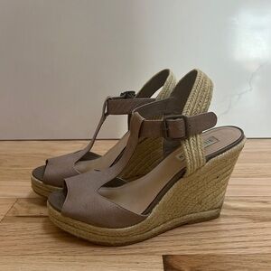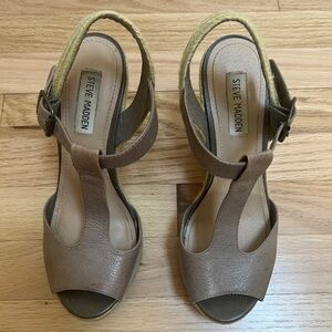 Steve Madden Wade Espadrille Wedge Size 8.5 Taupe Leather Upper Rattan Heels