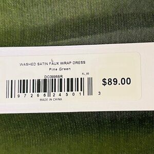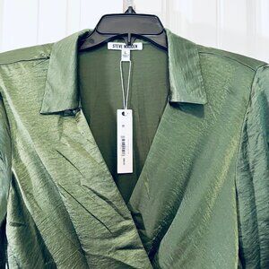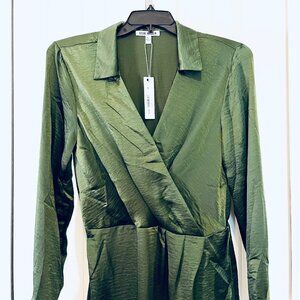 Steve Madden Washed Satin Faux Wrap Dress in Green (L) New with Tag