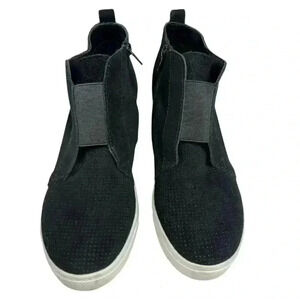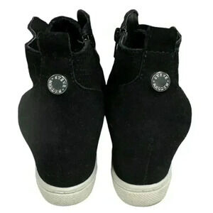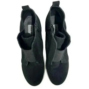 Steve Madden Wavery Sneaker Booties Black Suede Wedge Heel Zip Up Size 7