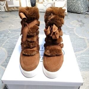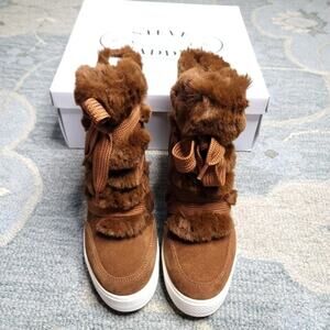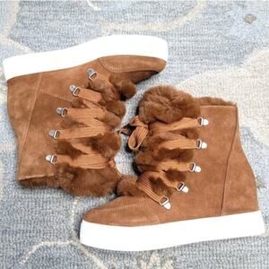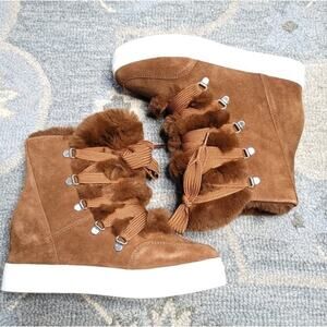 Steve Madden Wharton Faux Fur Suede Lace Up Boots, Size 8.5, New in Box/NWT
