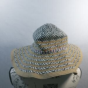Steve Madden White Black Paper Straw Khaki Sun Hat Wide Brim One Size