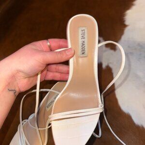Selling these stunning & fun white snakeskin sie 8 heels—worn just once, still in perfect condition, no flaws! Super comfortable, chic, and basically like new—grab them for a steal! ✨ DM for questions or to purchase! 💖