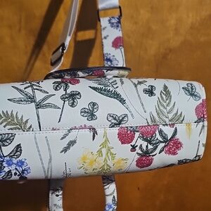 Elegant mini bag by Steve Madden with floral design. Includes matching heart pouch. Perfect for adding charm to any outfit. New with Tags. 10 inches long, 5 inches in height, 4 inches wide