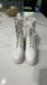 Step out in style with these chic white lace-up boots. Perfect for any occasion, they offer both comfort and elegance.