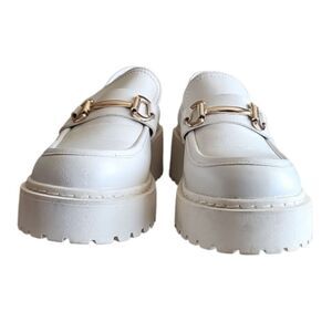 Steve Madden White Platform Loafers Chunky Lug Sole Slip-Ons Sz 10 Y2K Inspired