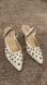 Elegant white pumps with bold stud accents. Ideal for adding edge to any outfit.