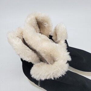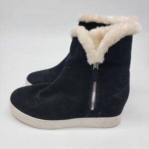 Steve Madden Wilder Suede Ankle Boots Women's Size 10M Black & Faux Fur Lining