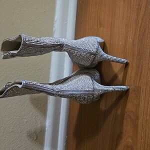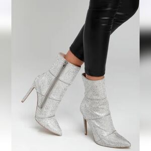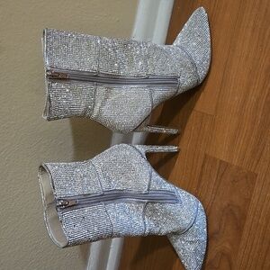 Step out in style with these stunning silver ankle boots. Perfect for any occasion, these high heel boots add a touch of elegance to your outfit. Great for nights out on the town, concerts, Date night, anything!