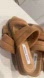 Step into style with these Steve Madden tan sandals, featuring a chic crisscross strap design. Crafted from a soft suede-like material, these sandals offer a minimalist look perfect for casual outings. The flat sole ensures comfort and ease with every step.