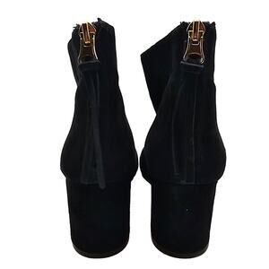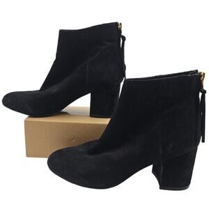 Steve Madden Womans size 6.5 Ithica-M Kid Suede Black Leather Booties Back Zipper closure with tassel pull 2.5" heels great preowned condition slight wear on upper and on soles shown in photos
