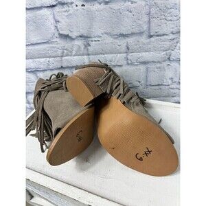 Steve Madden Women 7M Taupe Boot Suede Leather Zip Open Toe Fringe Heeled Bootie