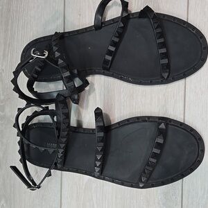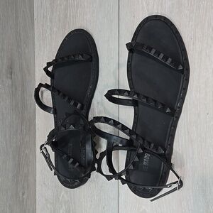 Steve Madden Women Black Gladiator Strappy Sandals Shoes Flats Sz 9