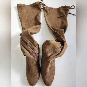 Steve Madden Women Brown Over The Knee Fabric Stretch Side Zipper w/ Tie, sz 7.5