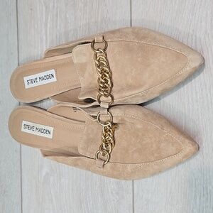 Steve Madden Women Forever Suede Loafers Gold Chain Flat Slide Sz 9M