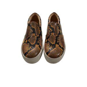 Steve Madden Gills Classic Slip-On Fashion Sneaker Orange Yellow Snake Women’s Shoes Clogs Slip-On Fashion Sneakers Size 8M. These shoes are preowned and in very good condition. Note: There is marking on the bottom soles from the previous owner.