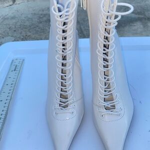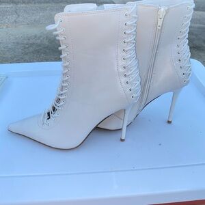 Steve Madden Women, Heeled ankle bootie, White, Point toe, lace up front and back Size 6