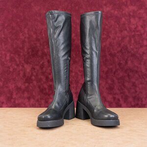 Steve Madden Women Henrik Black Platform Retro Vegan Leather Festival Boots 8.5