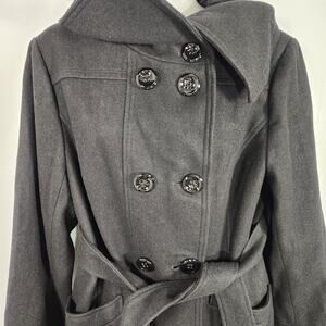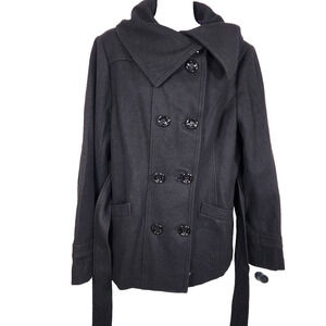 Steve Madden Women Peacoat Belted Wool Blend Black Lined Size XL Pockets Outdoor