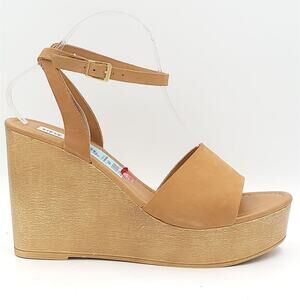 Steve Madden Women Strappy Wooden Wedge Sandals Welsh Size US 9.5 Camel Nubuck