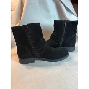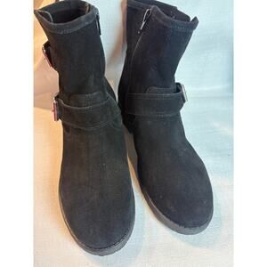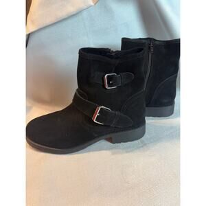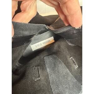 Steve Madden women's Alick motorcycle bootie. Black suede with zipper for easy on/off. Buckle detail. NWOT.