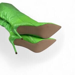 Steve Madden Women Sz 11 Idina Croc Embossed Pointed Toe Knee-High Boots Green